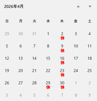 2025年5月4日(月)-2026年5月7日(木)GW休暇のため