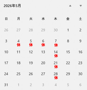 2025年5月4日(月)-2026年5月7日(木)GW休暇のため