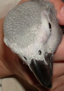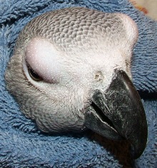 下の二つの画像に見られるように、他の鳥には、ビタミンA欠乏症の多くの微妙な兆候を示す可能性があります。このヨウムは、ちょうど目の前で非常にわずかな腫れがあります。放置した場合、これはすぐに最初のヨウムで見られる大きな腫れに進行すると思われる。
