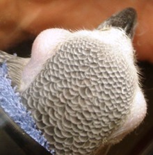 ヨウムの目の前方に非常に微妙な膨らみがわかる