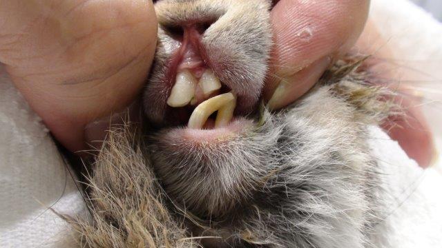 切歯の不正咬合は、遺伝的なものが多いとされています。特にダッチ系やロップ系は多いとされています。後天的には事故で前歯を折ってしまう。金属のケージを横向きにかじっている。柔らかい餌の多給でおこります。