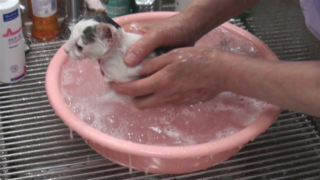 猫のシャンプー 、基本的に猫の被毛が汚れてしまったときや、においが出てきたときなどにします。長毛種1ヶ月に1回短毛種半年に1回程度。