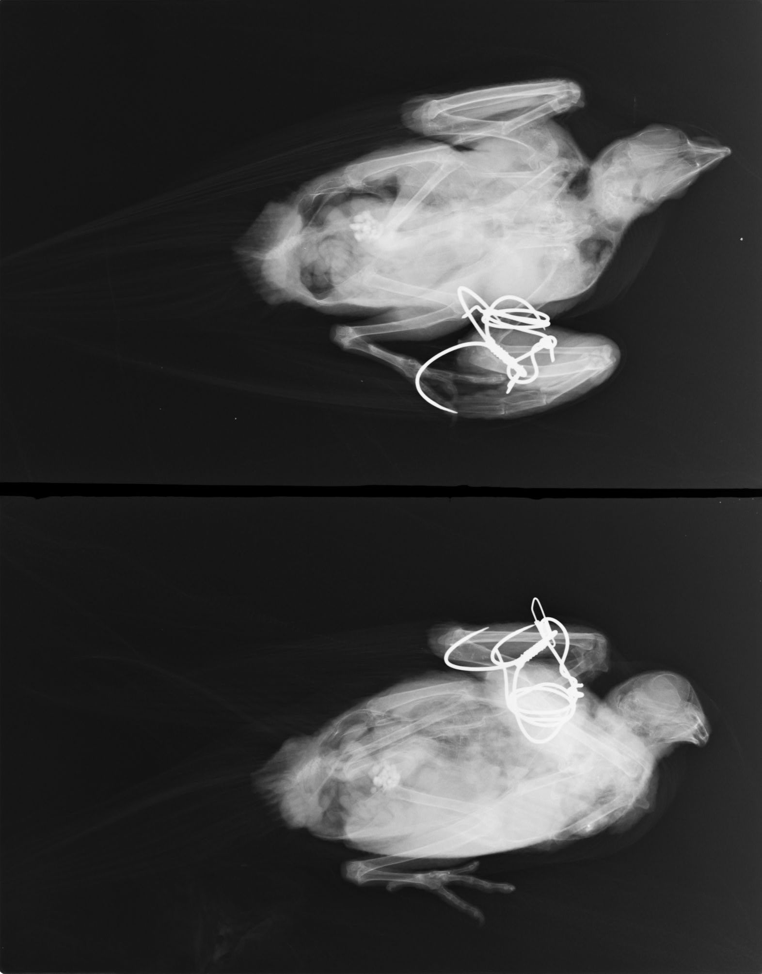 うまく飛べないようです。食い込んでいてよくわからないのでレントゲンとってみました。