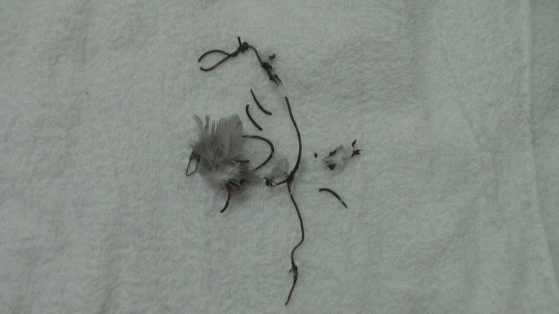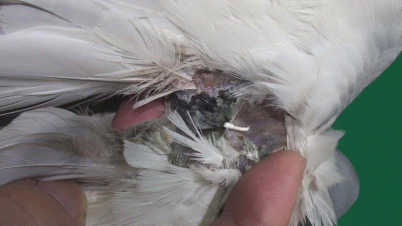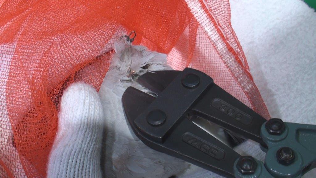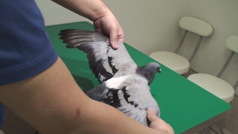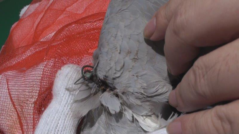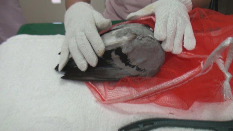 野鳥保護でハトをあずかりました。右ひじ部に針金が絡んでいます。