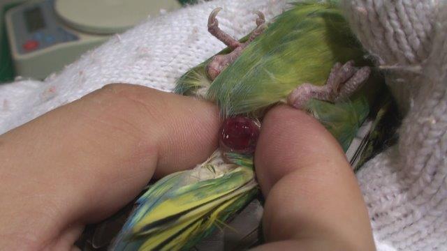 セキセイインコの便に血が混じるということで来院した。